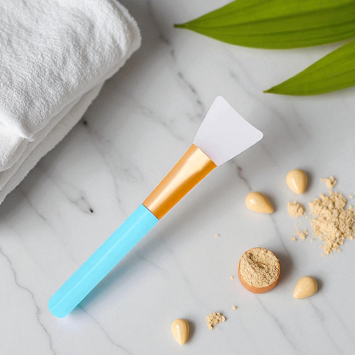 Brocha de silicona azul, ideal para aplicar mascarillas con precisión y sin desperdicio.