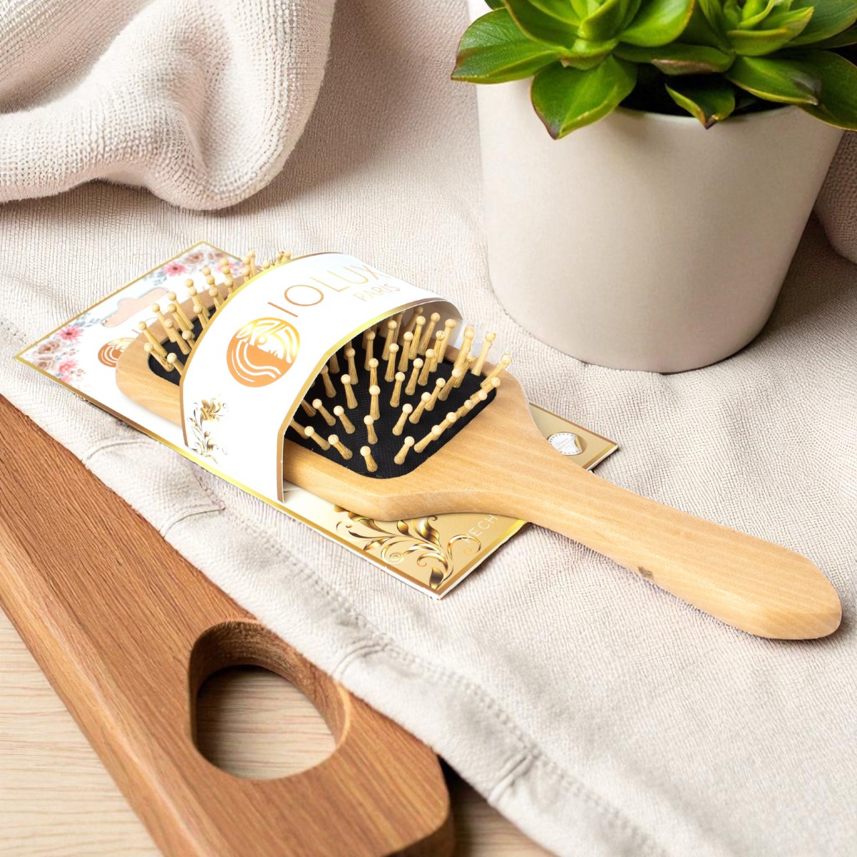 Diseño cuadrado con base acolchada para un cepillado suave y sin frizz.