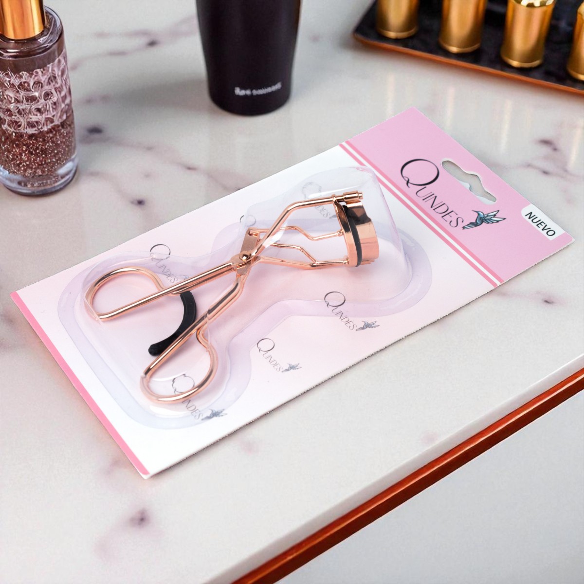 Luce unas pestañas curvas y naturales con este enchinador dorado de diseño redondeado y elegante.