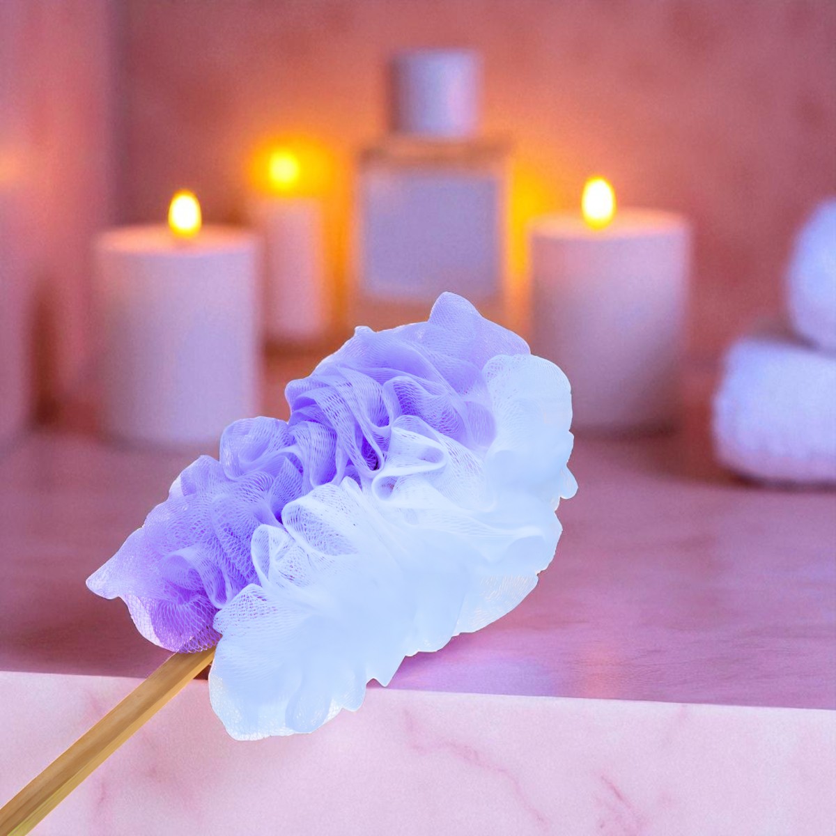 Esponja de baño con mango de madera, pensada para una limpieza diaria más cómoda, especialmente en la espalda y otras zonas difíciles de alcanzar. Aporta una espuma abundante y una sensación suave sobre la piel.