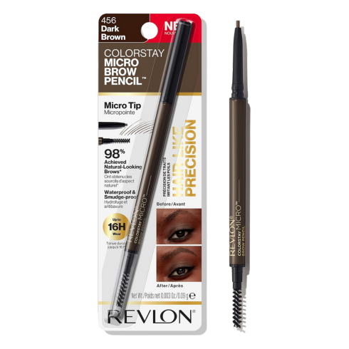 Revlon Colorstay Brow Pencil. Este lápiz de cejas impermeable tiene una punta angulada para rellenar con precisión y un cepillo de carrete para fijar, así tendrás cejas esculpidas durante todo el día.