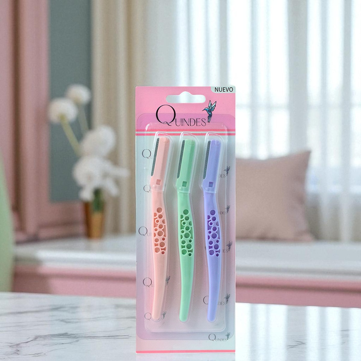 Cuchilla fina y afilada: Generalmente con una hoja pequeña, segura y de acero inoxidable que permite cortar el vello con precisión sin irritar la piel.